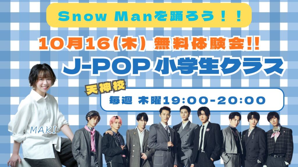 | 木 | 19:00-20:00 | 小学生J-POP | 初級 | 5,500円 | MAKI |